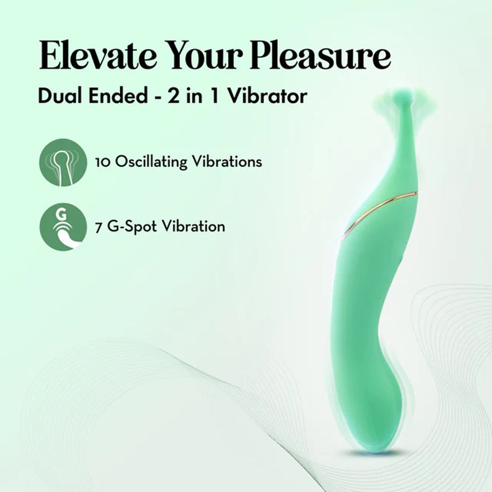 Introducing the Blush Collection's Stella in Green, your elegant companion for intimate exploration. This dual-ended wand is not just a pleasure product; it's designed to ignite your deepest desires with precision and grace. Featuring 10 oscillating vibrations and 7 targeted G-Spot settings, Stella offers a fully customizable experience that allows you to explore new heights of pleasure like never before.